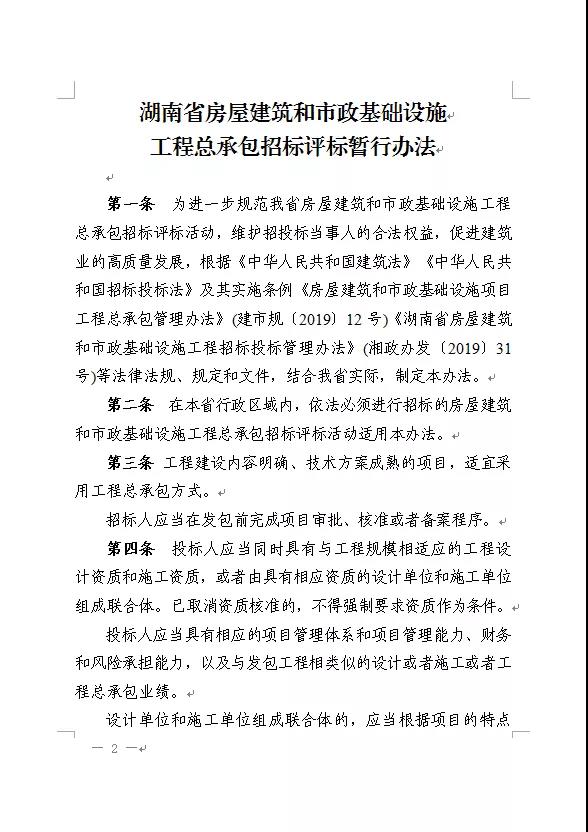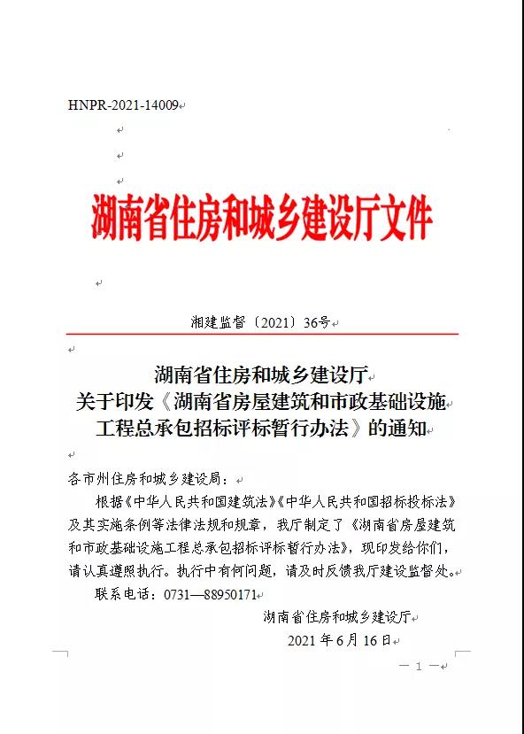 湖南省住房和城乡建设厅关于印发《湖南省房屋建筑和市政基础设施工程总承包招标评标暂行办法》的通知