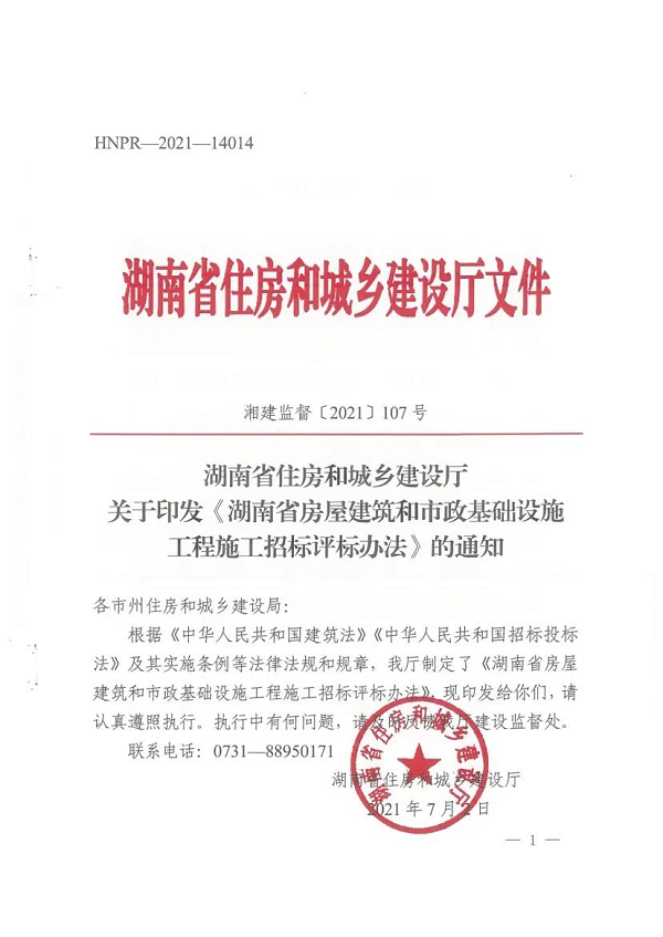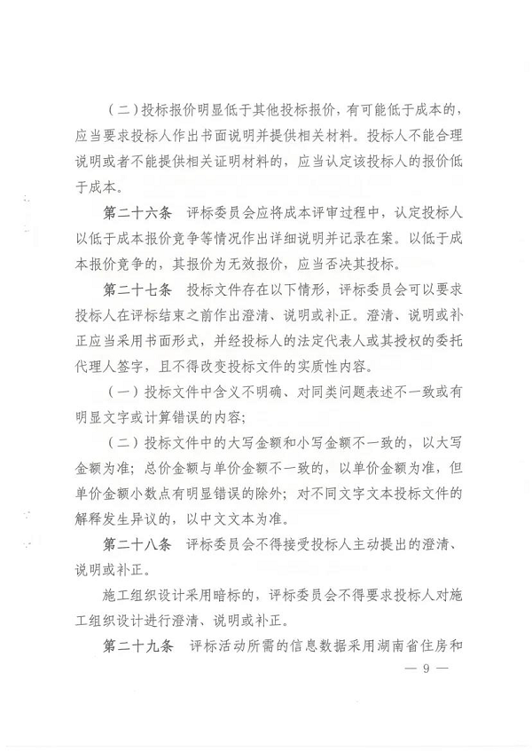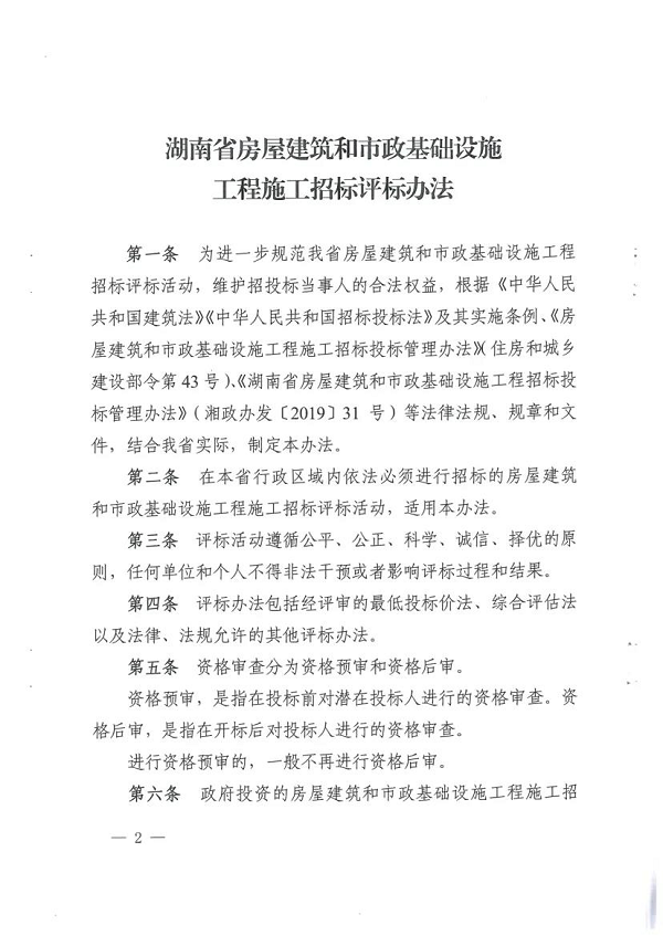 关于印发《湖南省房屋建筑和市政基础设施工程施工招标评标办法》的通知