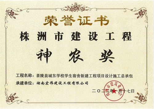 喜讯!开云手机茶陵县城东学校学生宿舍新建工程项目设计施工总承包工程荣获2020-2021年度《株洲市建设工程神农奖》!