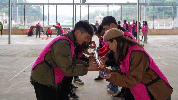 打铁趁热,紧接着“钓鱼小游戏”、“乒乓接力游戏”,考验了超强的团队协作能力与责任感。看似简单的钓鱼垒桩、乒乓接力,但是需要团结友爱的共同协作,全力以赴。在任务赛环节,大家各司其职,分工协作,及时总结经验教训,调整作战方案,最终得出了制胜秘籍。