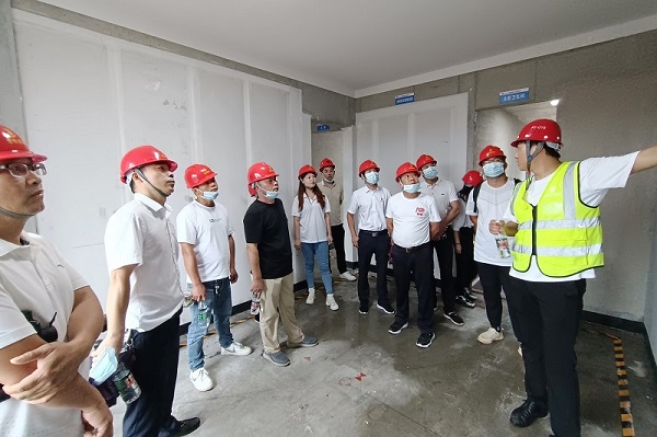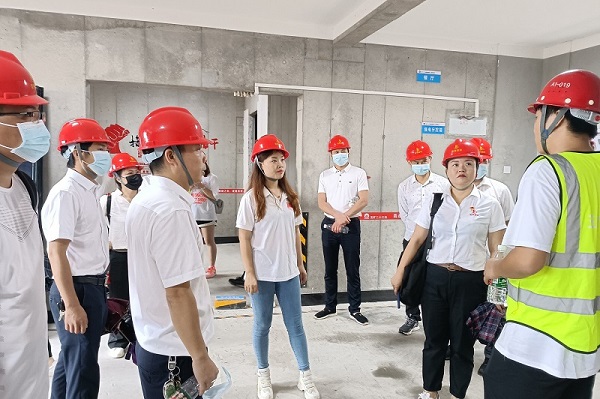 观摩学习第三站:前往株洲市中心医院急救中心综合大楼建设项目新建工程施工现场,学习 ALC轻质隔墙条板BIM预排布安装工艺、ALC轻质隔墙板和薄抹灰结合体系、BIM技术应用等新技术应用。