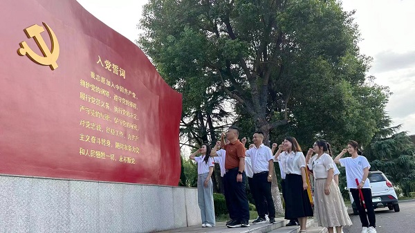 公司党支部书记、董事长龙泽宏同志带领全体党员高举右手,重温了入党誓词。