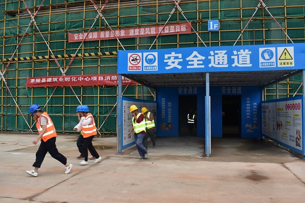 茶陵县建筑业孵化中心项目上演 “真火”消防演习