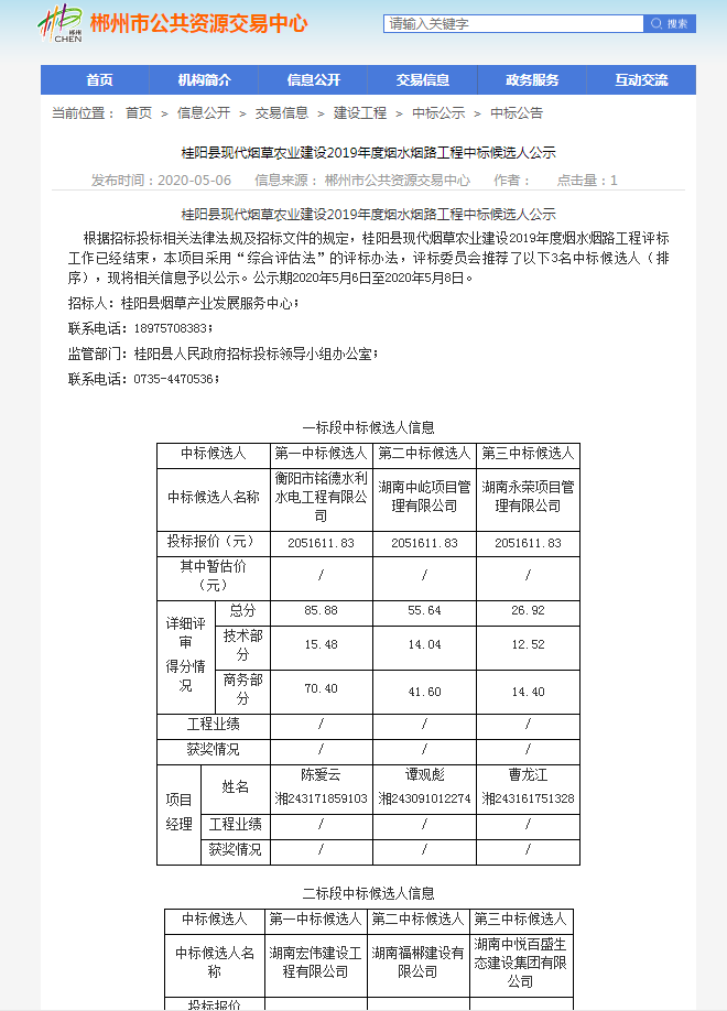 喜讯!桂阳县现代烟草农业建设2019年度烟水烟路工程中标候选人公示
