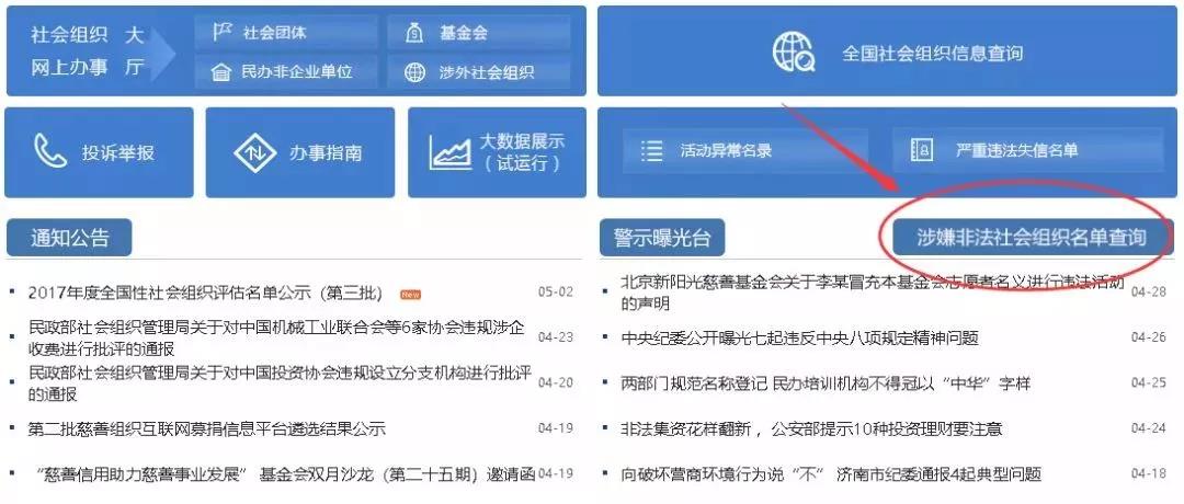 大家可登陆“中国社会组织网”进行查询,验证其的合法身份。