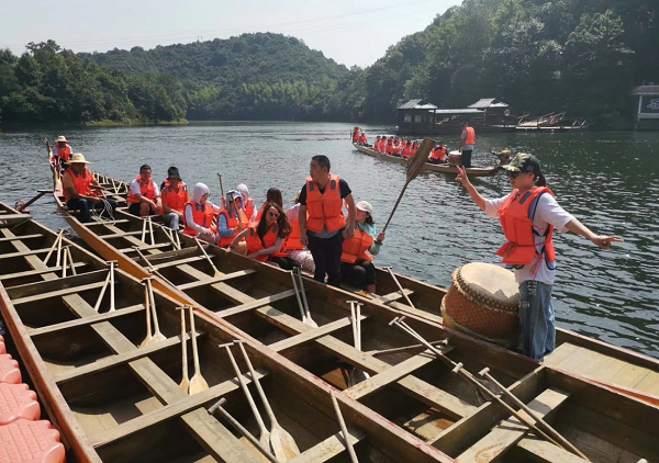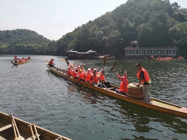 在破冰行动之后,开始了紧张刺激的划龙舟比赛,正所谓,集娱乐与训练一身。