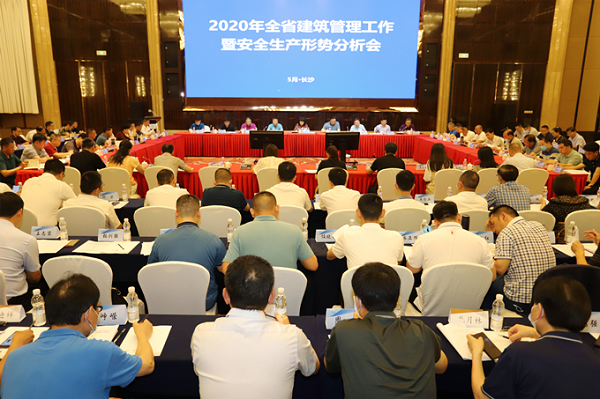 全省建筑管理工作暨安全生产形势分析会通报了2020年建筑施工质量安全专项执法检查情况、全省智慧工地监管平台建设和智慧工地创建情况、2020年1-5月全省建筑施工生产安全事故及安全生产形势情况、长沙市望城区2019年混凝土事件处理情况、全省建筑工人实名制管理情况和2019年全省建筑工程施工转包违法分包等违法违规行为查处情况;对《湖南省住房和城乡建设厅关于进一步提升建筑工程质量安全监督规范化工作水平的通知》进行了解读;对建筑工程消防施工质量监督、建筑工程消防验收备案和抽查有关工作作出安排;市州住房城乡建设主管部门分管负责同志分别结合工作实际进行了交流发言。