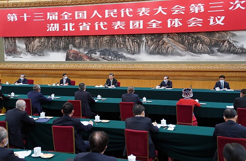 5月24日,中共中央总书记、国家主席、中央军委主席习近平参加十三届全国人大三次会议湖北代表团的审议。