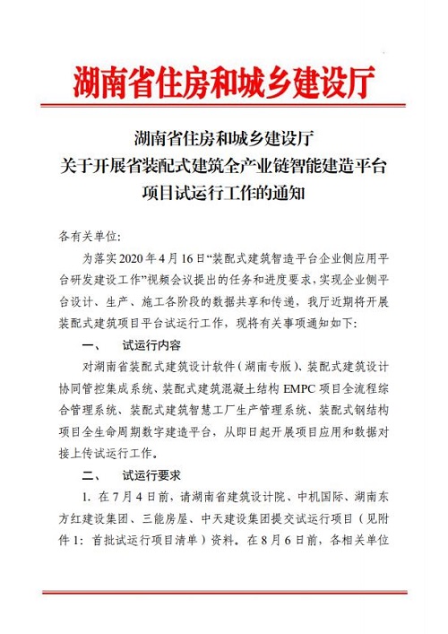 关于开展省装配式建筑全产业链智能建造平台项目试运行工作的通知
