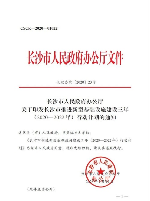 长沙市人民政府办公厅关于印发长沙市推进新型基础设施建设三年 (2020—2022 年)行动计划的通知